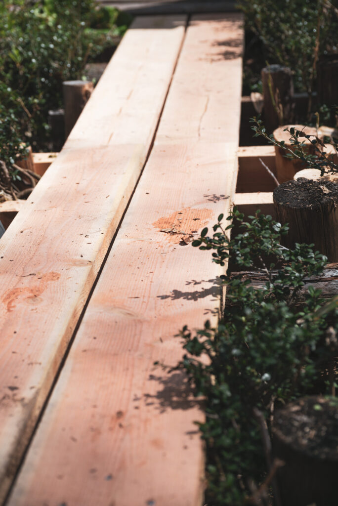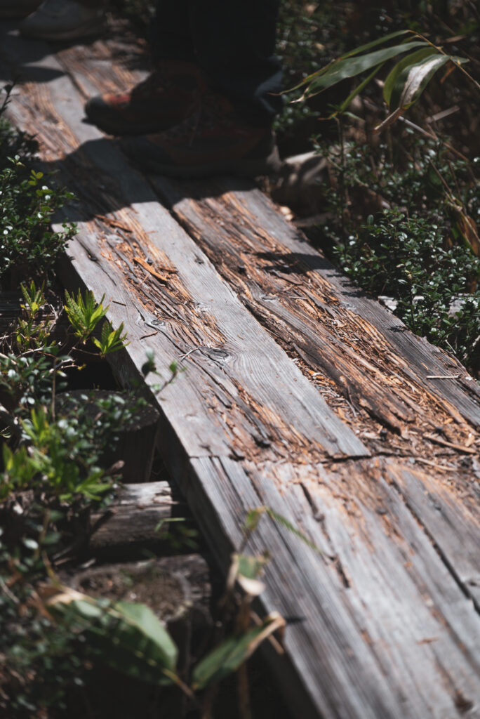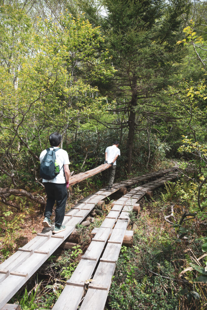 朽ちてしまった木道の箇所を撤去して修繕のサポートを行いました。
